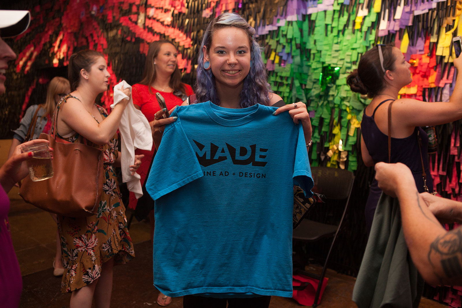 That energy was certainly felt at the brand relaunch party at Space Gallery. The MADE logo quickly made quite the impression, as it was screen printed on items that attendees brought with them.