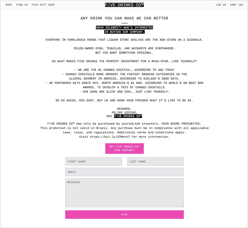 Five Drinks Co. Seeks a Celebrity Buyer in Cheeky Campaign