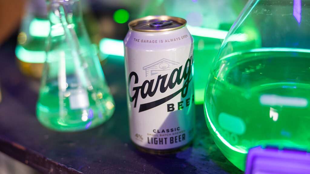 “The inspiration was like many of the other concepts that have recently come to life—this was more of a mandate than a brief,” a Garage Beer spokesperson tells Muse. “Kelce was super excited about these spots and similar to Super Bowl, he played a large role in creative direction and overall vision. We really wanted to test the limits of beer and science at the same damn time—thus, ‘Garage Labs’ was born.”
