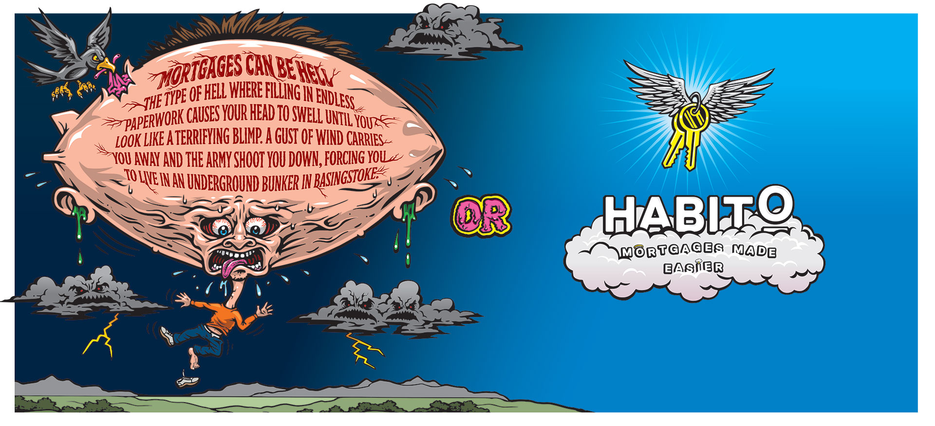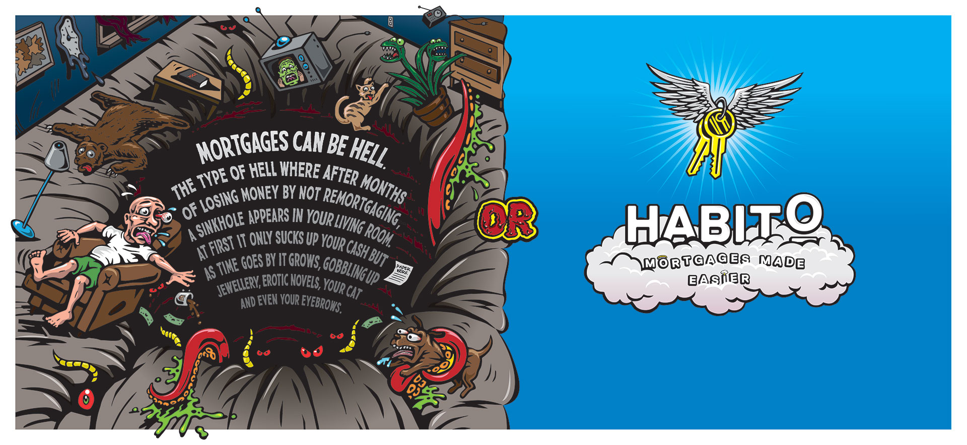 “Our ads are deliberately colourful, playful and irreverent,” says Abba Newbery, chief marketing officer at Habito. “But while the scenarios are heavily dramatized, they reflect an all-too real truth—that people find the process of getting a mortgage utterly hellish. Our insights tell us that two thirds of people suffer from mortgage stress and £15.5 billion is wasted on mortgages every year because homeowners are paying too much interest.