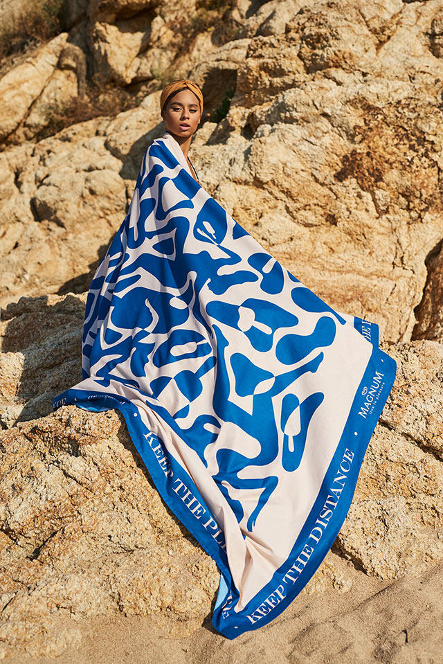 Each towel is made for two people to pleasurably (heh!) social distance, beachside or parkside. They are designed by artists Karan Singh, David Vanadia and Quentin Monge, who drew inspiration from Magnum ice cream’s iconic silhouette.