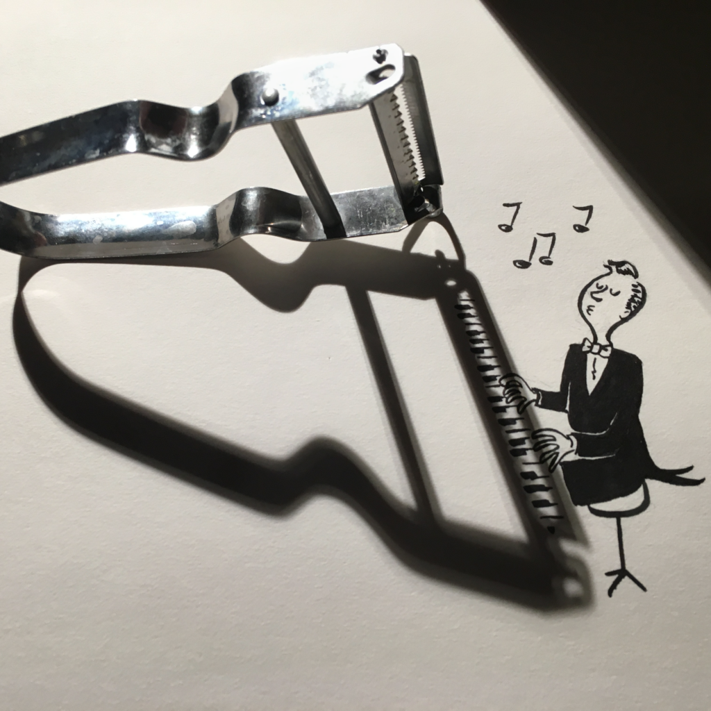 The first ever “Shadowology” image I did was an elephant created by the shadow of my teacup. The sun was shining on my desk. So, the first few months I always worked with sunlight. I knew exactly at what time the sun would create good shadows at each part of my house.