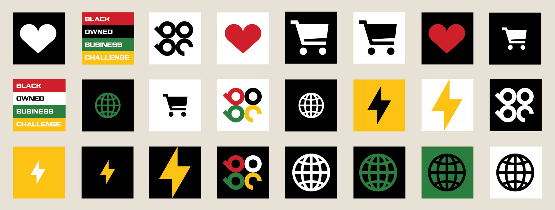 Visual elements leverage the Pan-African colors. Red stands for passion, culture, love and family; black represents education, knowledge, power and discovery; and green signifies money and generational wealth.