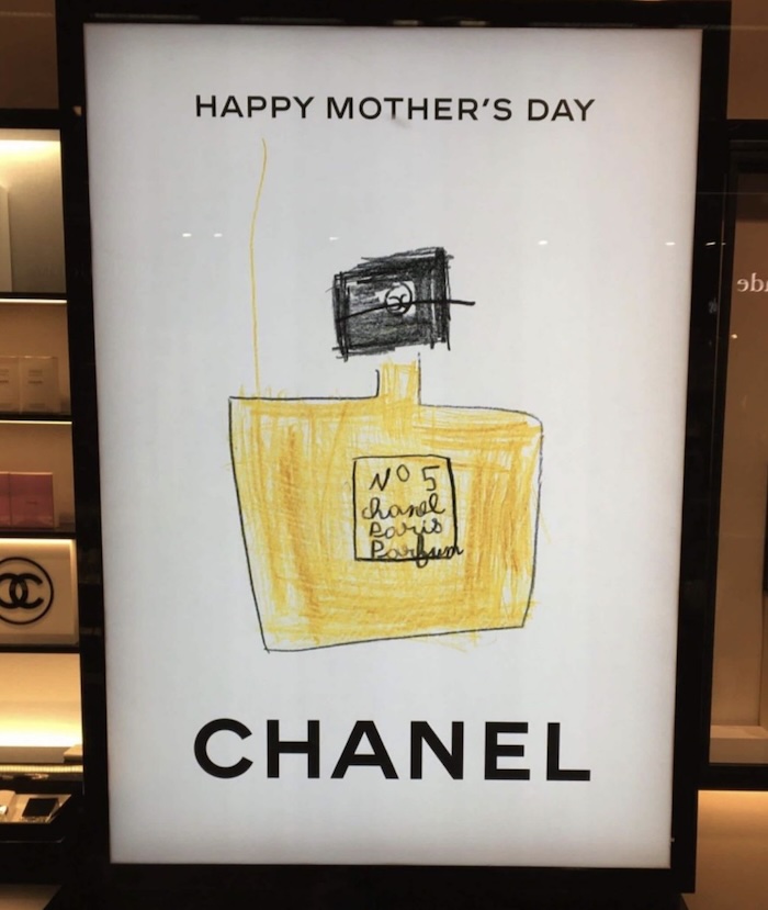 Happy Mother’s day … again! Last Sunday was France’s turn to celebrate the occasion. To mark it, Chanel released a series of outdoor images, featuring signature perfume bottles drawn by children. Someone in the comments on LinkedIn complained this campaign goes out every year. Someone else argued, “it’s effective!” Another person said, wryly, “I hope those kids were paid.”