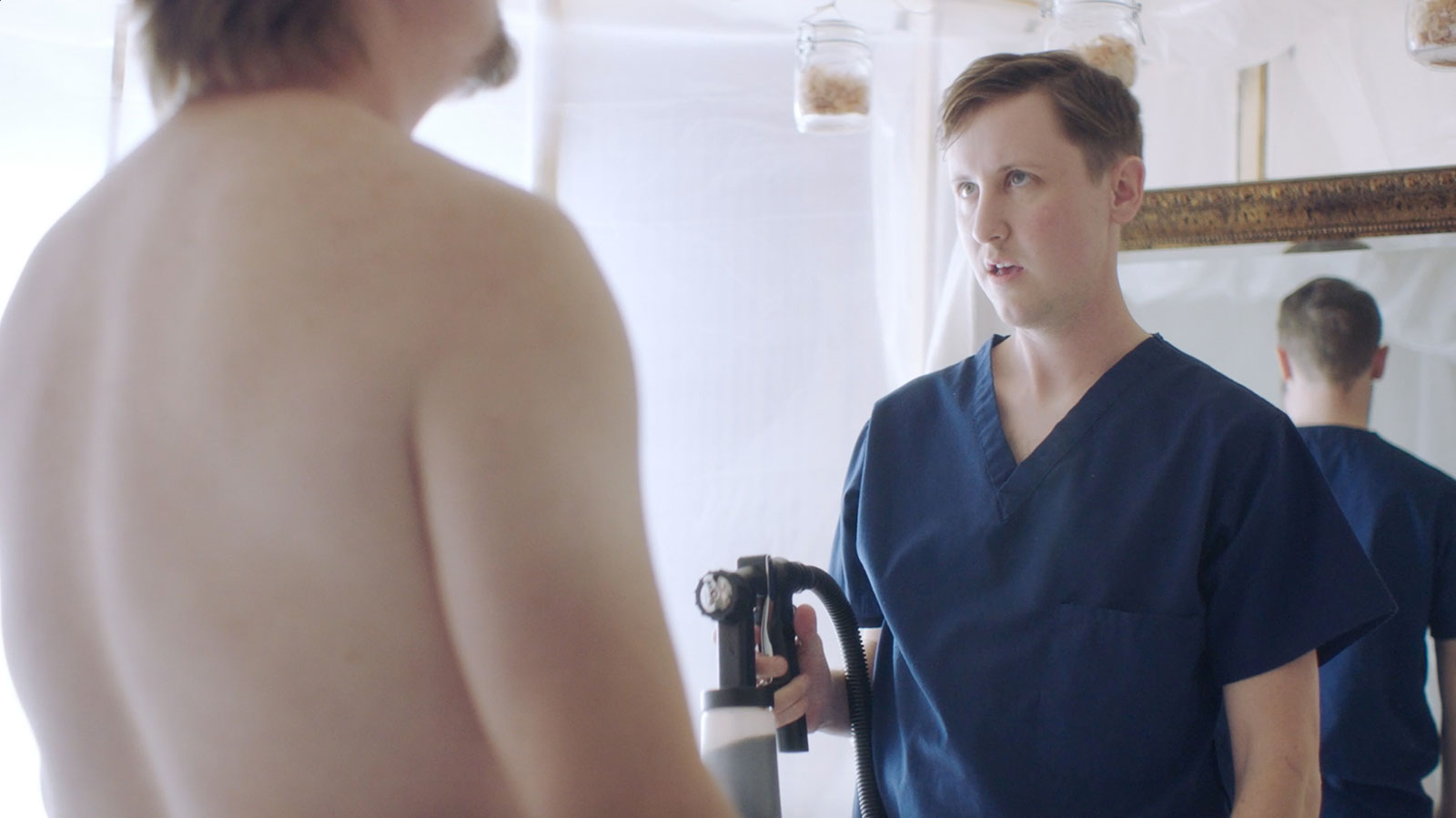 When you boil it down to a bone broth, Bronzed is about trust. This is way too serious of an answer for what our film is, but we do happen to be living in a disorienting time where trust as a concept is more important than ever, but at the same time it’s never felt more fragile. It’s all a bit anxiety inducing, and the characters are born out of that uneasiness.