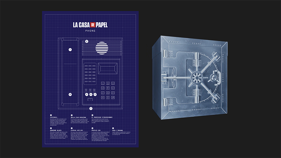 The La Casa De Papel handset lets users eavesdrop on convos of a “heist crew” in action. A secret (mini) safe can be accessed through the proper code.