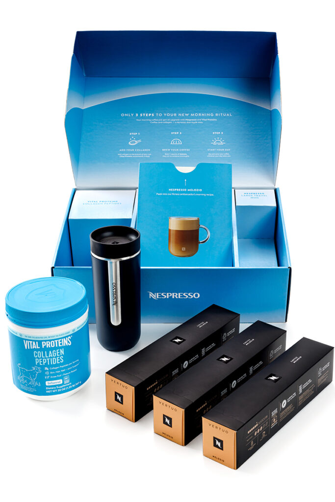 Meanwhile, Nespresso partnered with powdered collagen brand Vital Proteins on a Daily Wellness Pack, given that many folks add it to their morning coffee.