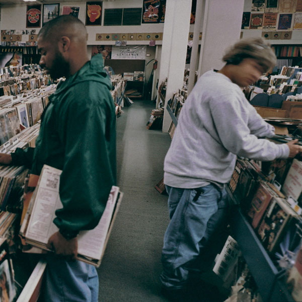 This photo of dudes in a record store shines a light on a big part of what went into the album. It primarily comprises samples that were found digging through bins at record stores like these. DJ Shadow isn’t actually even in the photo—it’s actually a few of his friends at a shop in the Bay Area.