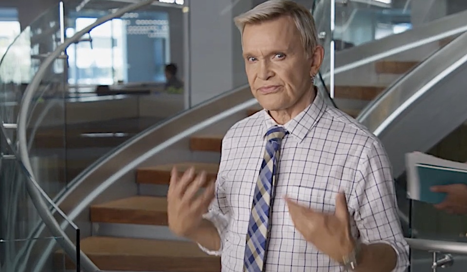 Dude makes an ugly shirt and tie look rebellious, almost, in a memorable gig that deftly uses nostalgia to plug cutting-edge tech.