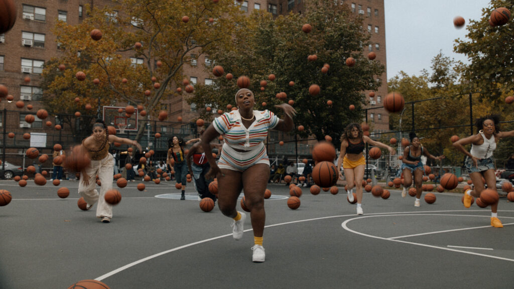 One of the reasons we enlisted Dave and Cassidy is because of their artistic expression and how they’re able to take a concept and elevate all of the small details. We love this scene [of the basketballs raining down] not only because it’s visually striking, but it was an effective way to bring in more basketball cues.