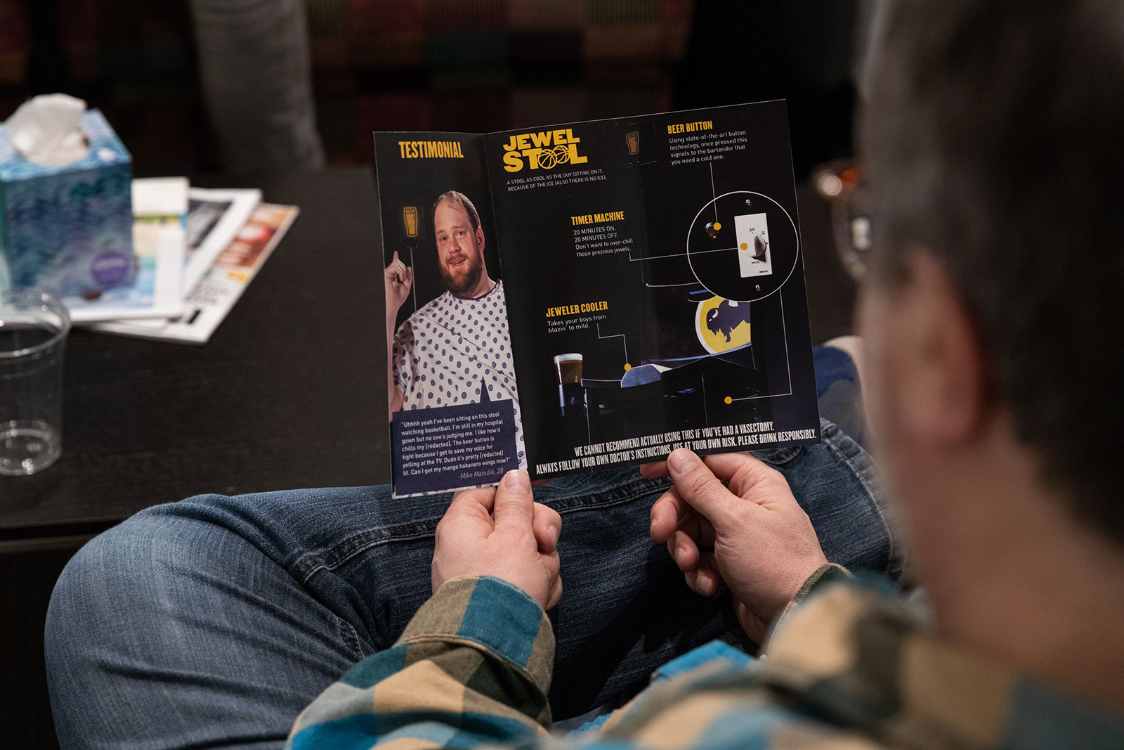 Part of our mission for Buffalo Wild Wings is to try and help fans have the best tournament-watching experience possible. And as smart as it may be to schedule a surgery so a guy can lay on the couch and take in all of the games on a weekday, it still isn’t the optimal sports-watching experience. Guys aren’t going to want to come in with a bag of frozen peas and hang with their buddies. That’s why we created the Jewel Stool. So a guy could still come be amongst his herd and keep cool at the same time. It’s a small gesture but indicative of the bigger idea.